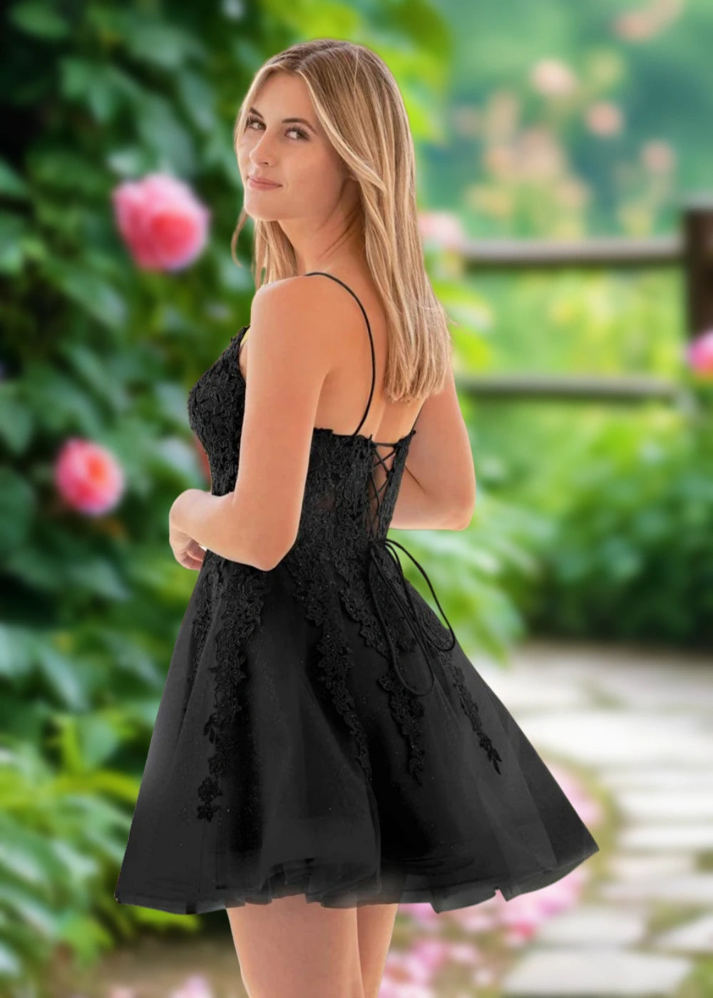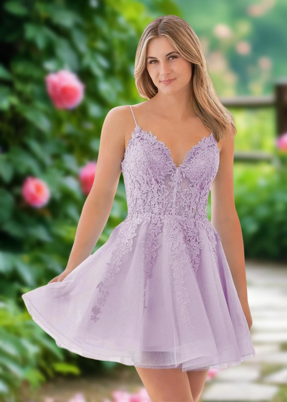 Searching for an eye-catching homecoming dress? Our Light Blue Corset Lace A Line Homecoming Dress fits the bill! Available in light blue, lavender, red, royal blue, and black, it blends elegance with trend. The delicate lace detailing and corset back design exude sophistication, while the flattering a-line silhouette suits all body types. Made from soft lace and airy tulle, it ensures comfort and grace. Priced affordably, with free shipping on select orders. Rock this lace homecoming dress and shine at your event!