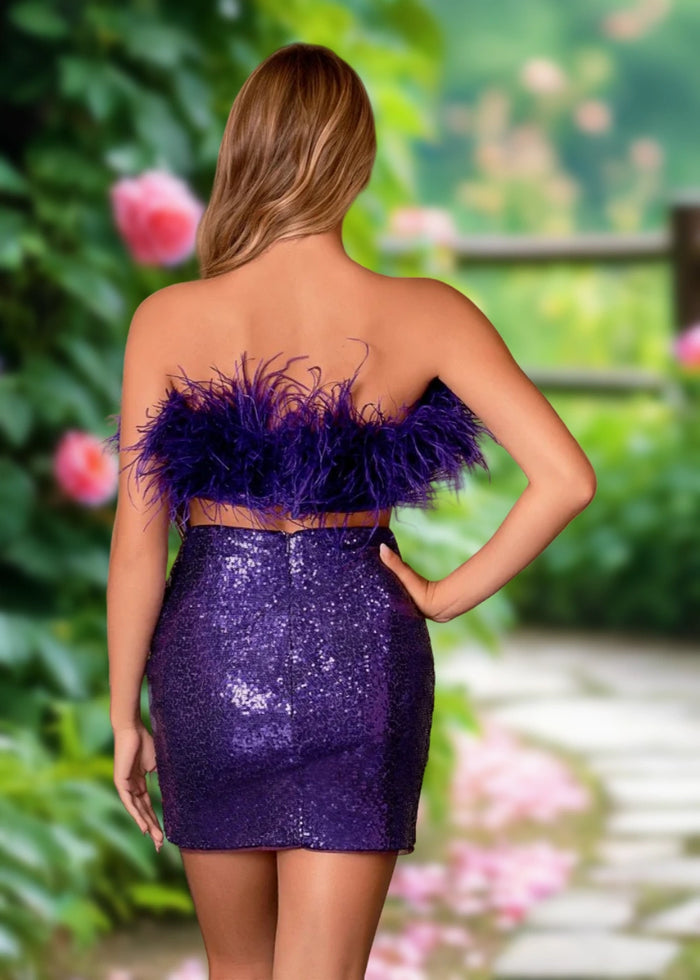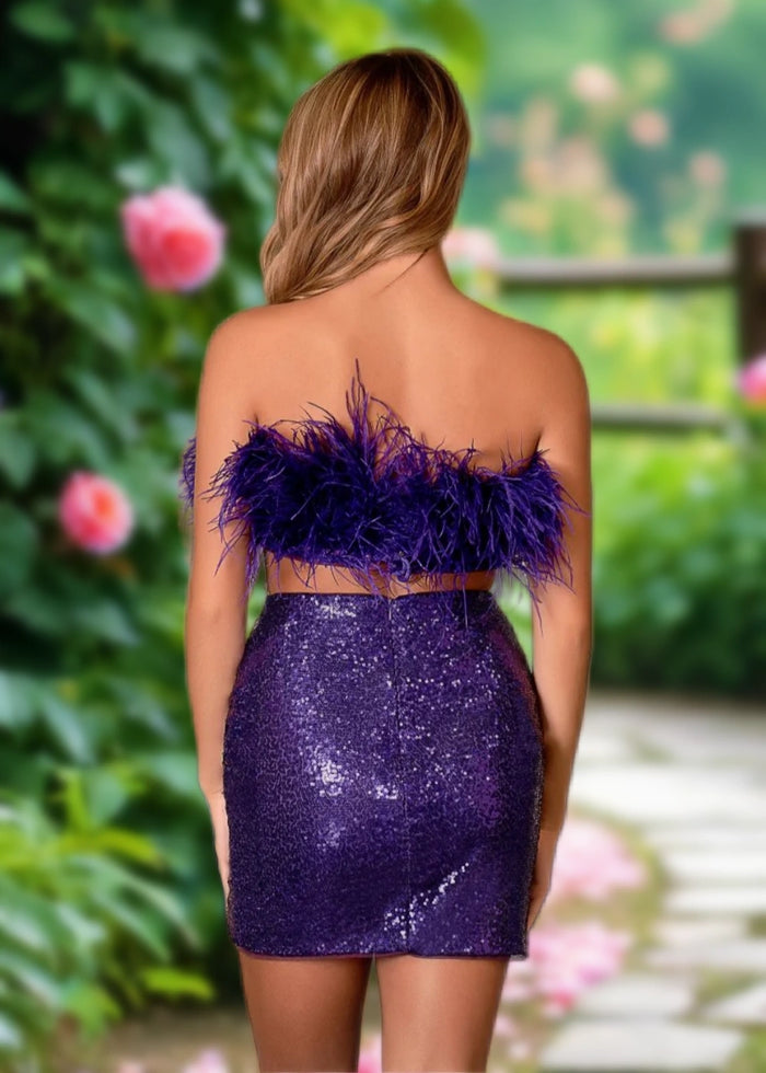 Make a statement with our Dark Purple 2 Piece Cocktail Dress! The feather-adorned top brings bold glamour, while the sequin skirt shimmers elegantly. Crafted from quality feather and sequin materials, it blends style and comfort. Priced affordably, plus part of our orders enjoy free shipping—ideal for prom or special occasions!
