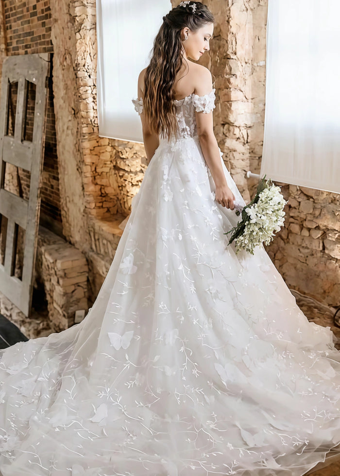 One of our customers said, "I felt like a princess in this dress! The off - the - shoulder style was so flattering, and the floral details were even more beautiful in person. It made my wedding day unforgettable."